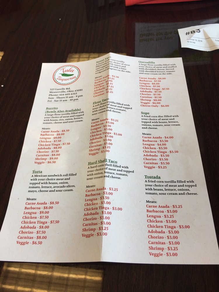 Introducing Tula Taqueria, a vibrant taco haven located at 525 Lazelle Rd in Westerville, OH. This Latinx-owned gem features a menu bursting with flavor and offers delightful options for everyone, including vegan and vegetarian dishes. The atmosphere is casual and inviting, perfect for group gatherings or a family outing.